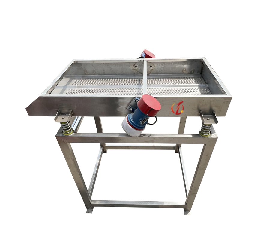 تُهتزّ الفاكهة المغسولة لإزالة الرطوبة السطحية، مما يُسهّل تجفيفها بالهواء ويُوفّر سطحًا مستويًا. صُنعت غربالات SZF الخطية الهزازة من الفولاذ المقاوم للصدأ الصالح للأكل، وتستخدم محركًا هزازًا لهزّ المنتج، ما يُزيل الرطوبة السطحية ويدفعه في الوقت نفسه للأمام بخط مستقيم. تستخدم غربالات SZF الخطية الهزازة هزازًا كهربائيًا كمصدر للاهتزاز، مما يُؤدي إلى قذف المادة لأعلى على الغربال مع تحريكه للأمام بخط مستقيم، مما يُتيح إزالة الماء باستخدام غربال مُطابق.
